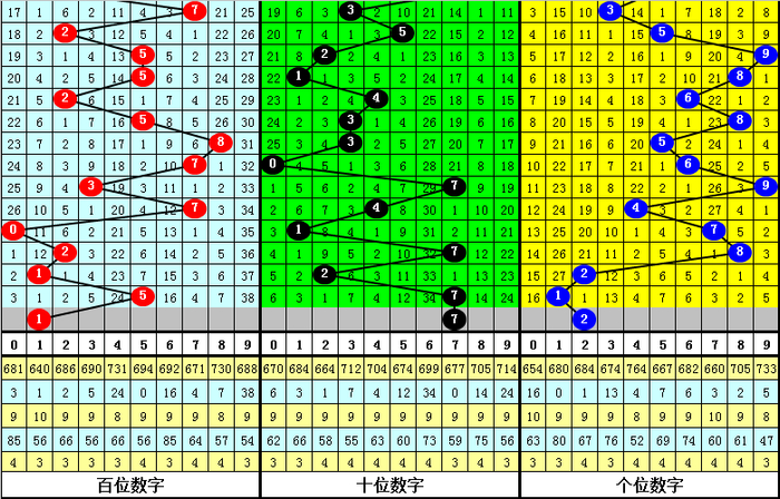 个位分析:该位最近10期出现范围在1-9之间,波动了9个点位,波动范围较大,上期开出号码1,下降了1个点位,本期防止该位上升。另外该位最近10期012路号码比为3:3:4,2路号码近期热出,本期看好2路号码出现,关注号码2。