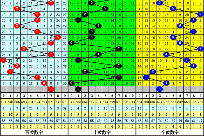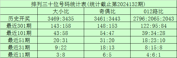 在连续11期奖号中,该位012路比为4:6:1,2路号码较少,目前012路号码遗漏期数分别是:0期、1期和2期,本期预计出现1路奖号。
