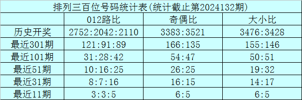 上期回顾:排列三第2024132期奖号为:604。奖号形态组六,大小比1:2,奇偶比0:3,012路2:1:0。