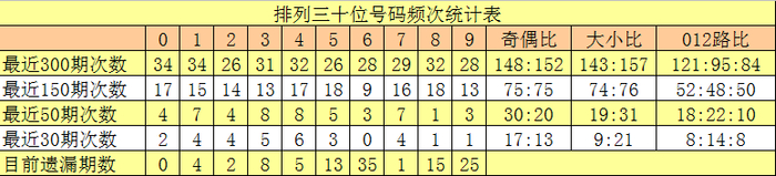 十位号码:前50期走势最活跃的号码为:3、4开出8个,1、7开出7个;走势最冷的号码为:8开出1个,6、9开出3个。十位号码012路比开出18:22:10,大小比开出19:31。本期十位排除两码:2、9,参考号码3、5、8,胆码关注5。