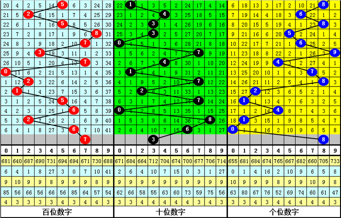 十位分析:该位最近10期出现范围在0-8之间,波动了9个点位,波动范围较大,上期开出号码6,下降了2个点位,本期预计该位下降。另外该位最近10期奇偶比为4:6,出现次数相等,本期看好奇数号码出现,参考号码3。