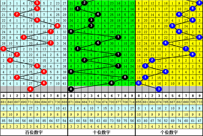跨度分析:最近5期分别开出跨度:1、6、6、7、6,本期注意跨度走小,参考跨度4。