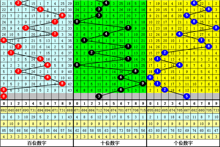 百位:1、2路号较热,本期防0路号反弹,关注0。