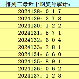 上期回顾:排列三第2024137期开奖号码为128,历史上组选出现36次,直选出现4次。