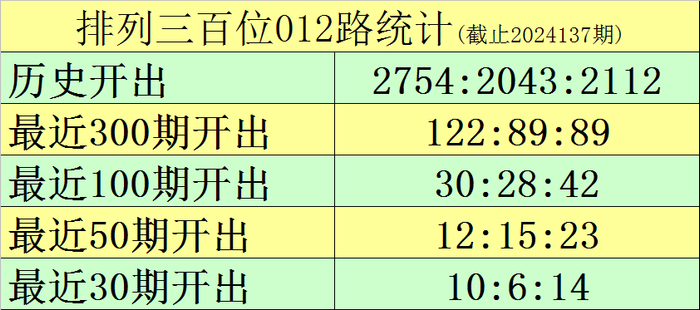 上期回顾:排列三2024137期奖号为128,类型为组六,奇偶比为1:2,大小比为1:2,和值为11。