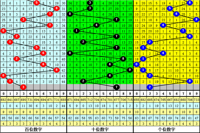 第二位3-6之间的中号开出14个,目前遗漏1期,其中号码5出现2次,目前遗漏18期;号码3出现4次,目前遗漏13期;号码4出现6次,目前遗漏10期;号码6出现2次,目前遗漏1期。