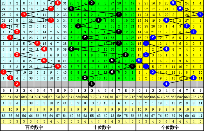 百位目前最冷号码为:9,当前遗漏44期,该号码历史最大遗漏为54期,本期防百位9解冻;