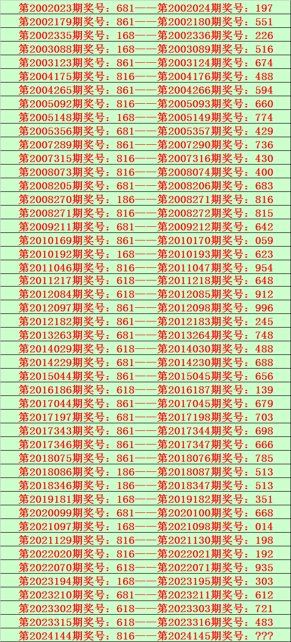 福彩3D第2024145期开奖日期:2024年6月3日,历史上第145期已开出了22次奖号,历年同期号码分别为:213、465、445、943、384、119、064、110、667、494、628、389、612、197、941、945、386、315、109、176、150、206。