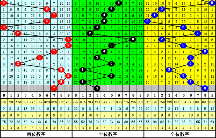 其中,组三出现5次,组六出现17次,单选0-9分别开出: