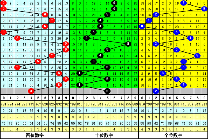 跨度分析:在第145期同期历史奖号中,号码跨度奇偶比为10:12,大小比为16:6,012路比为7:4:11,跨度开出频次分别为:跨度5、6出现6次,跨度1、8出现3次,跨度2出现2次,跨度4、9出现1次,跨度0、3、7出现0次,本期关注奇数跨度出现,一码跨度参考3。