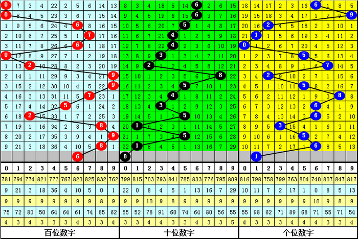 二、百位分析:上期开出号码8,前10次号码8出现之后下期分别开出号码:4606442599,其中号码大小比为5:5,相等;奇偶比为3:7,偶数号码表现非常活跃;012路比为5:3:2,0路号码表现活跃。本期参考号码:6。