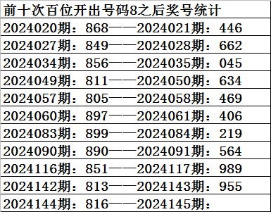 一、上期开奖:福利彩票3D第2024144期奖号为816。奇偶比为1:2,大小比为:2:1,奖号和值为15,奖号跨度为7。