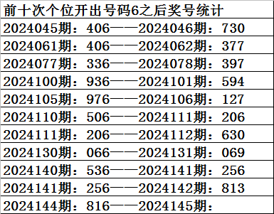 四、个位分析:上期开出号码6,前10次号码6出现之后下期同位号码为:0774760963,其中号码大小比为6:4,基本相当;奇偶比为5:5,相等;012路比为6:4:0,1路号码走温。本期参考号码:1。