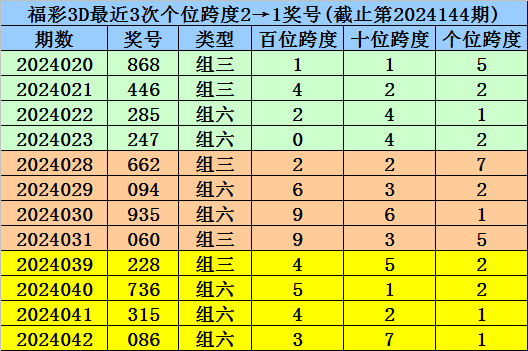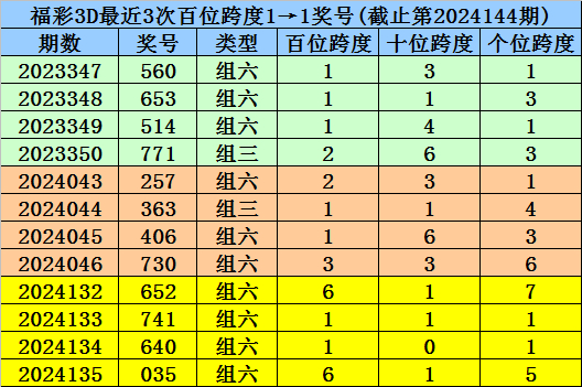 第2024043-第2024045期奖号:257、363、406,其下期奖号为:730,首位号码跨度为3;