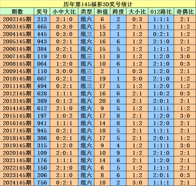 开奖回顾:福彩3D第2024145期奖号为:756。