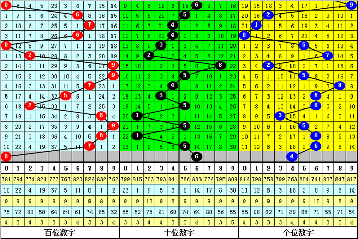 在历史同期号码中,组选0-9号码出现次数为:2出现3次,号码0、3、9出现5次,号码7出现6次,号码1、8出现7次,号码5、6出现8次,号码4出现12次,本期看好两码4、6出现。