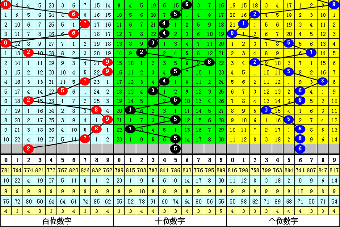 在单选号码0-9方面,其中表现最热的三码为:456,本期预计这三码中落号,胆码参考:5;表现最冷的三码为:023,本期这三码不可能同时出现,必杀一码:3。