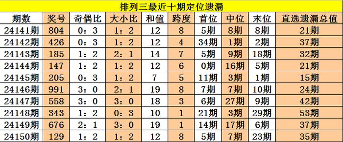 开奖回顾:排列三第2024150期奖号:129,定位直选遗漏值5期、7期、23期,遗漏总值为35期。