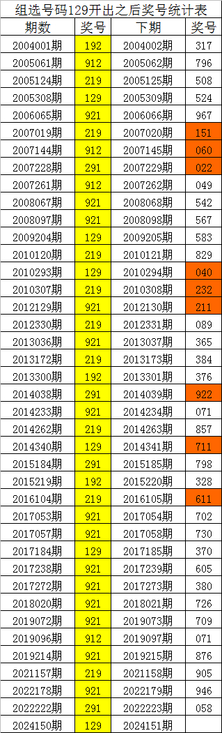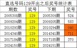 从上表统计可以看出,直选号码129开出之后,其下期奖号: