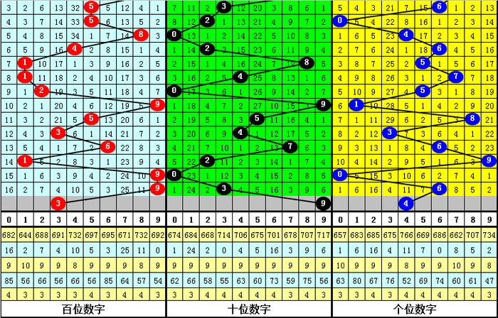 另外,在组选0-9的号码分布中,号码7表现最冷,开出6次;号码4、8走势最热,开出了17次。本期预计号码组478中落号,参考号码4。