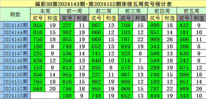 老梁福彩3D第2024153期综合推荐: