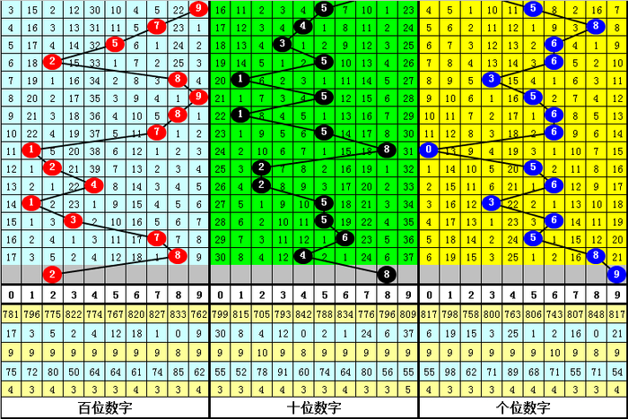 跨度分析:在第153期同期历史奖号中,号码跨度012路比为9:7:6,奇偶比为6:16,大小比为13:9,跨度开出频次分别为:跨度6出现5次,跨度4、8出现4次,跨度7出现3次,跨度2、3出现2次,跨度0、9出现1次,跨度1、5出现0次,本期关注1路跨度出现,一码跨度参考7。