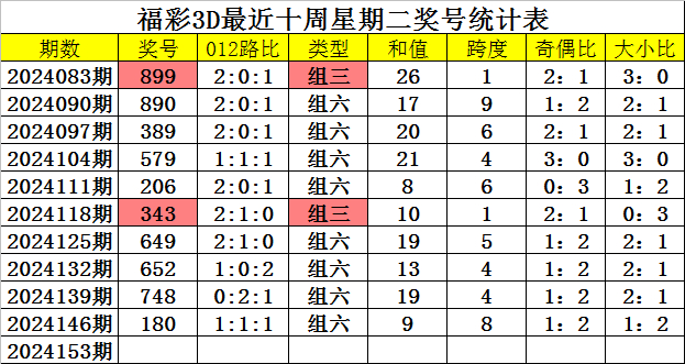 福彩3D第2024153期四叔推荐: