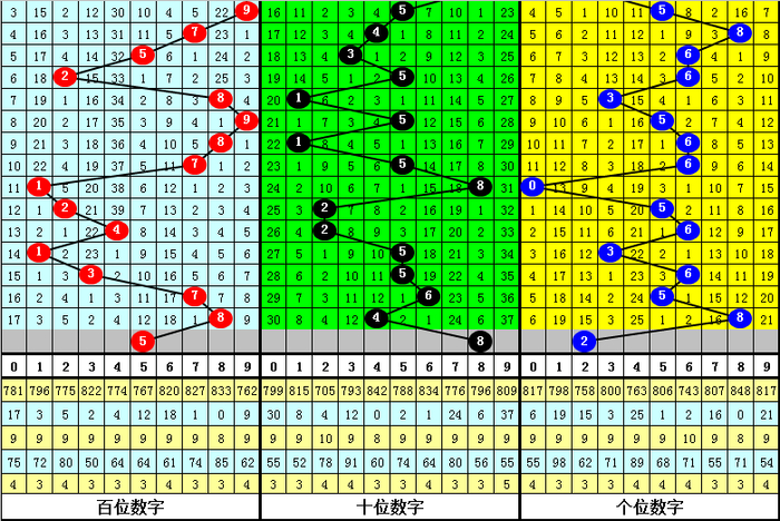 四、个位分析:上期开出号码8,前10次号码8出现之后下期同位号码为:6127910936,其中号码大小比为5:5,相等;奇偶比为6:4,基本持平;012路比为6:3:1,2路号码走势相当冷。本期参考号码:2。