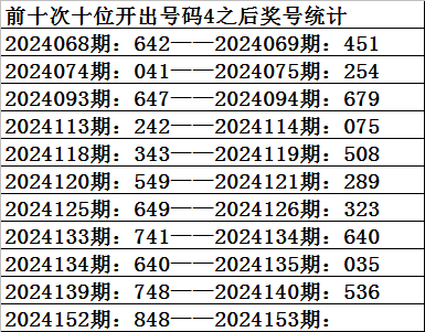 三、十位分析:上期开出号码4,前10次号码4出现之后下期同位号码为:5577082433,其中号码大小比为5:5,相等;奇偶比为6:4,基本持平;012路比为3:3:4,2路号码走温。本期参考号码:8。
