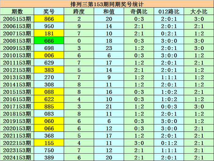 号码012路比:第154期历史同期号码012路比为22:17:18,本期预计012路比开出1:1:1。