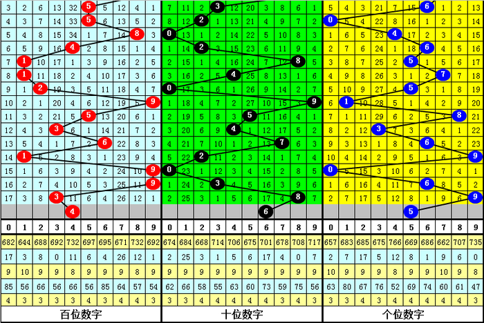号码跨度:在第154期同期奖号中,跨度开出频次分别为:跨度6开出4期,跨度5开出3期,跨度1、2、3、8、9开出2期,跨度4、7开出1期,跨度0没有出现。去年同期开出1,今年同期预计跨度上升,注意跨度2。