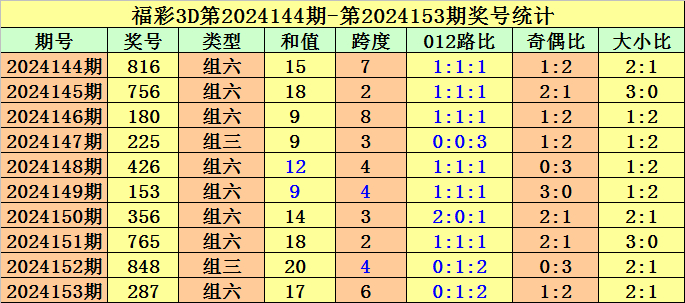 012路分析:上期012路比0:1:2,上期0路号码轮空,本期重防回补,看好1路号码走冷,012比参考2:0:1。