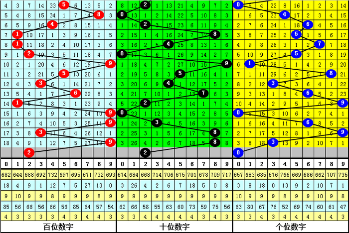 号码奇偶比:第155期历史同期号码奇偶比开出28:29,其中奇偶比1:2出现6次,2:1出现5次,3:0出现4次,0:3出现4次,本期参考奇偶比0:3。