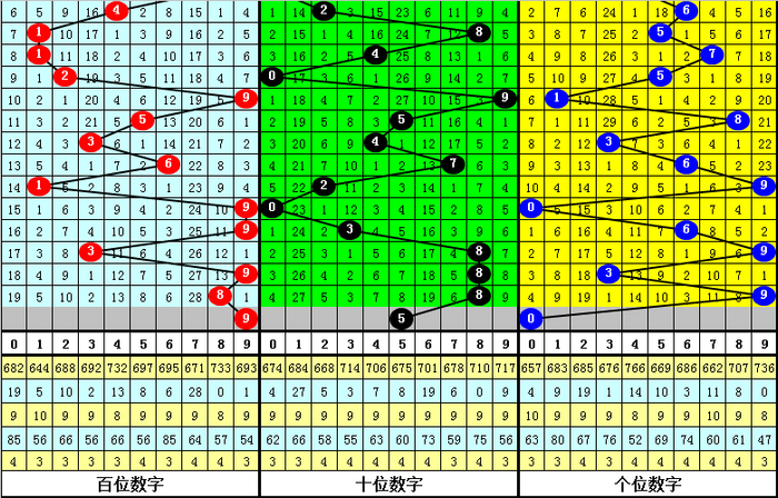 其中,号码0-9开出次数分别为:号码0开出2次、1开出3次、2开出4次、3开出4次、4开出3次、5开出1次、6开出3次、7开出2次、8开出1次、9开出7次。