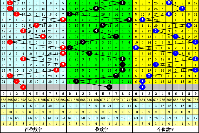 百位分析:上期出现号码2为:小号、质数,在连续9期开奖中,百位分别为:大号、合数:6;小号、质数:1;大号、合数:9;大号、合数:9;小号、质数:3;大号、合数:9;大号、合数:8;小号、质数:1;小号、质数:2,其中小号出现频繁,质数开出较热,百位本期预计开出小号、质数。