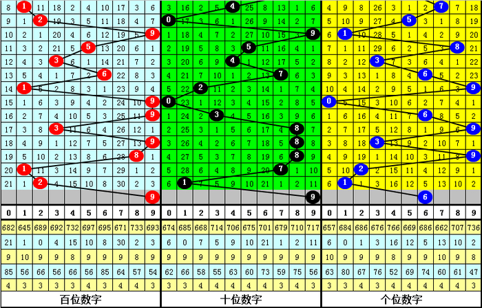 近期百位大号表现较冷,目前连续走冷2期,本期重点关注大号回补;该位奇号明显较热,目前仅轮空一期,本期预计再出奇号。百位本期杀号:2567,胆码关注:139。