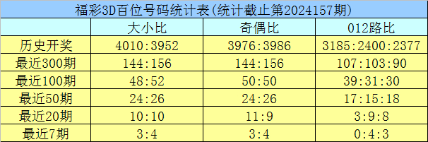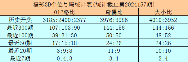 开奖回顾:福彩3D第2024157期奖号为:126。奖号形态开出组六,奇偶比开出1:2,012路比为1:1:1,大小比为1:2。