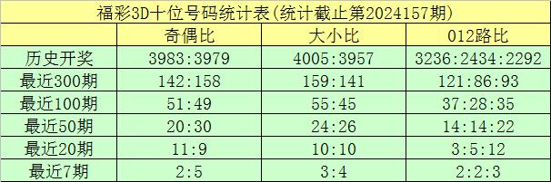 前7期奇偶比为3:4,奇数号码出现较少,本期适当关注奇数号码回补;