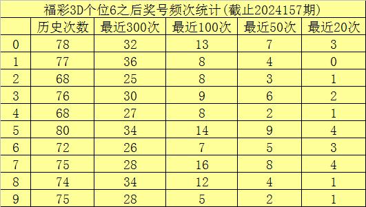 个位奖号6最近三期开出之后,其下期分别落号:0、3、5,号码出现在:高频区域、高频区域、高频区域,本期个位绝杀低频号码,排除5码:12469。