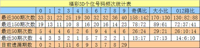 个位分析:近50期该位表现活跃的号码有:6出现9期,3、5、9出现6期;表现较冷的号码有:4开出2期,1、2、7、8开出4期。该位号码奇偶比为26:24,大小比为29:21。本期该位杀两码0、4,防号码5、7、8出现,精选一码8。