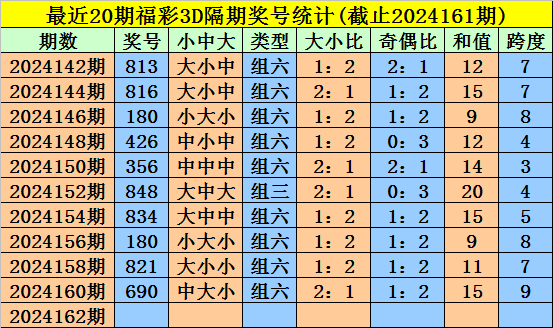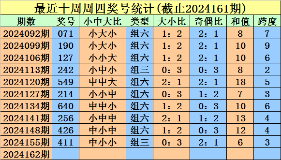 奖号类型判断:近期周四组六明显活跃,近十周开出8次,当前轮空1周,组三出现较少,本周四看好在组六。
