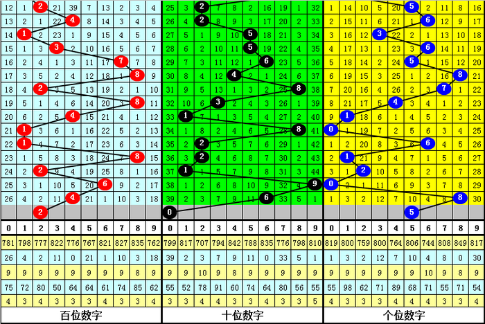 跨度分析:3D上期跨度为4,跨度近期比较分散,本期看好跨度出现在3-7区间,最大跨度关注34567,看好跨度5。
