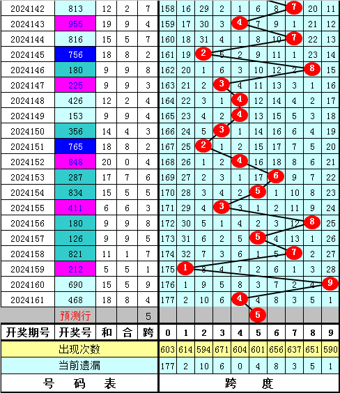 福彩3D第2024161期最大跨度开出4,近期最大跨度波动较大,本期预计最大跨度在3-7区段出现,最大跨度关注34567,精选跨度5。