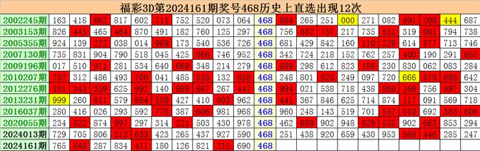 直选号码468历史上开出了12次,其下期分别开出奖号:884、756、681、342、889、248、994、441、960、462、251。