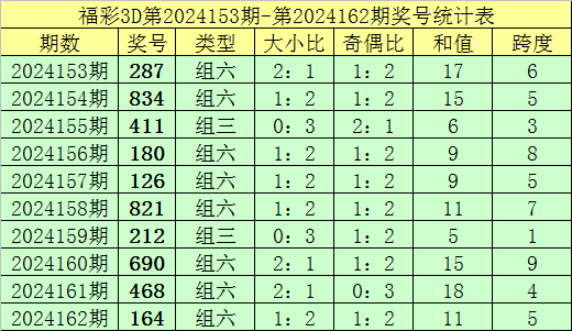 其中大小比1:2,奇偶比1:2,和值11,跨度5。