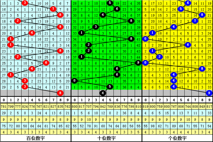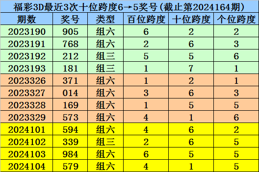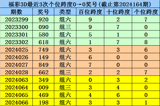 第2024063-第2024065期奖号:349、009、469,其下期奖号为:198,末位号码跨度为3;