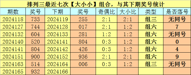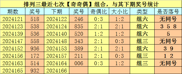 开奖回顾:排列三第2024165期开奖号码为:932。奖号类型为:组六,大小类型为:大小小,奇偶类型为:奇奇偶,无重号。