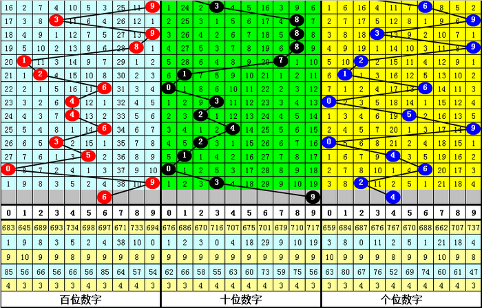百位:下期开奖百位以1路和2路号码为主,0路号码没有出现,表现非常冷,本期注意0路号码回补,参考号码6。