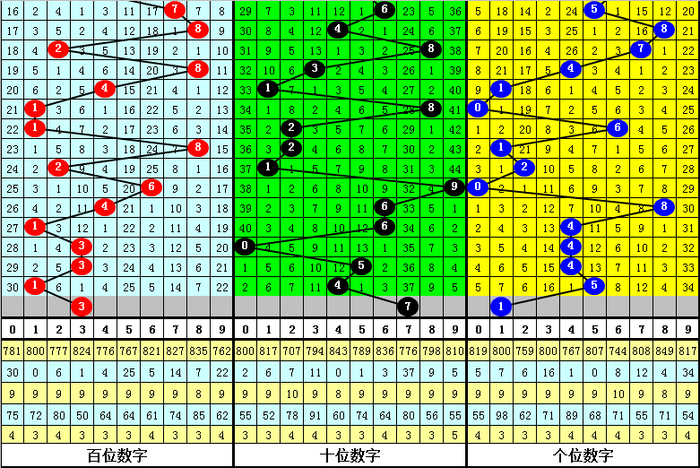 跨度分析:3D上期跨度为4,跨度近期比较分散,本期看好跨度出现在4-8之间,最大跨度关注45678,跨度关注6。