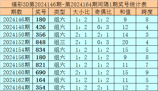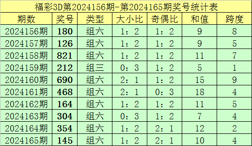 其中大小比1:2,奇偶比2:1,和值10,跨度4。